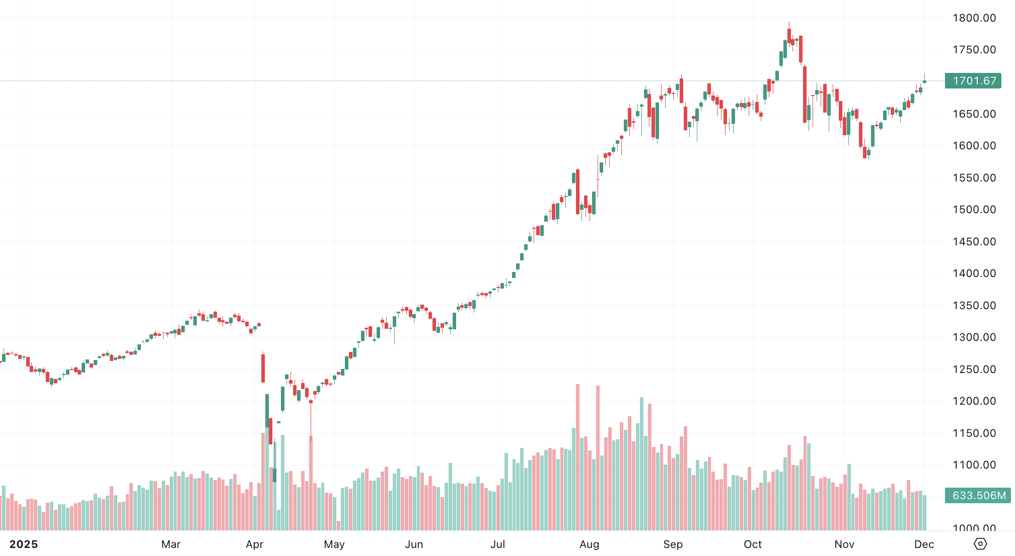 Mở đầu tháng 12, VN-Index ghi nhận phiên tăng điểm tích cực. Đóng cửa phiên 1/12, VN-Index tăng được 10,68 điểm, tương đương +0,63% lên 1.701,67 điểm.