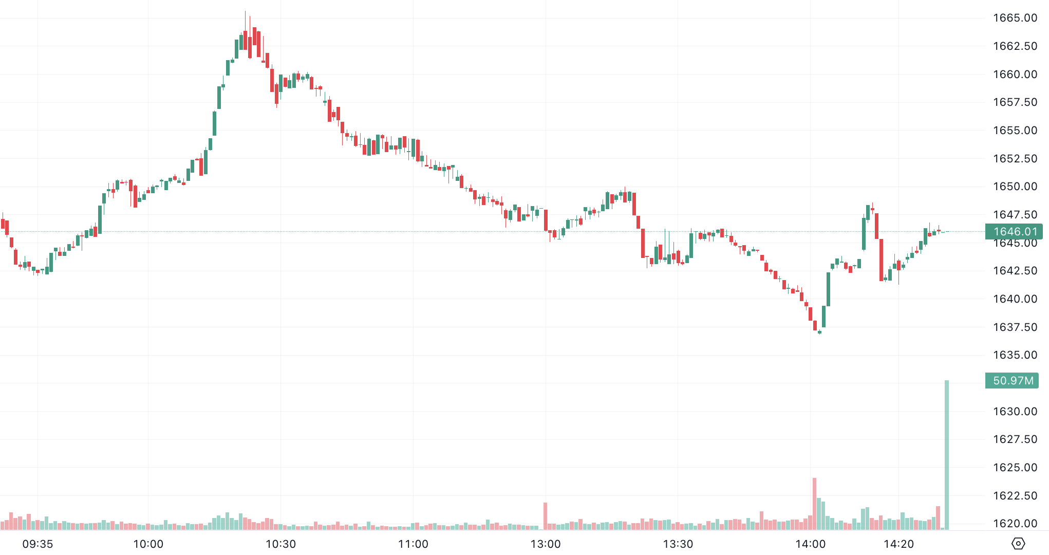VN-Index có phiên giằng co và rung lắc mạnh ngay trong phiên đầu tuần. Đóng cửa phiên, chỉ số giảm 0,88 điểm tương ứng -0,05%, về 1.646,01 điểm.