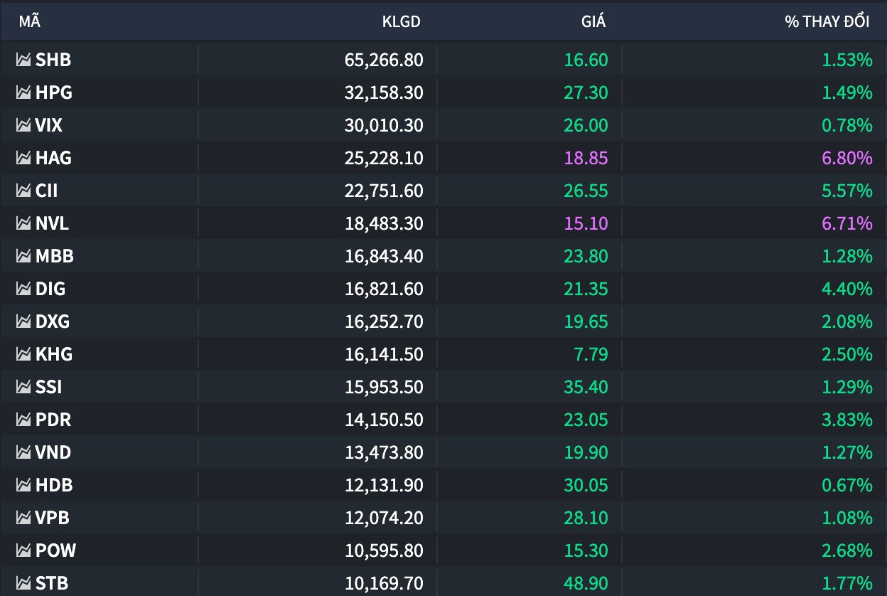 | Những mã được giao dịch nhiều nhất trên HoSE phiên 17/11. |