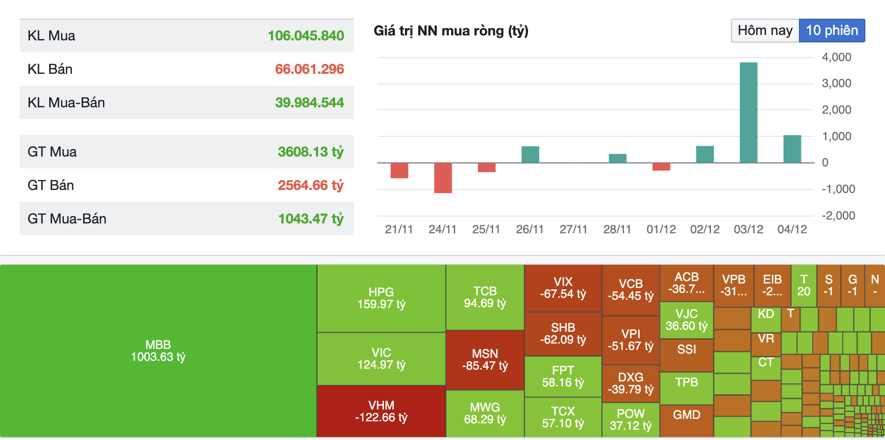 Chứng khoán phiên 4/12: Khối ngoại mua ròng 3 phiên liên tiếp, chi nghìn tỷ gom MBB